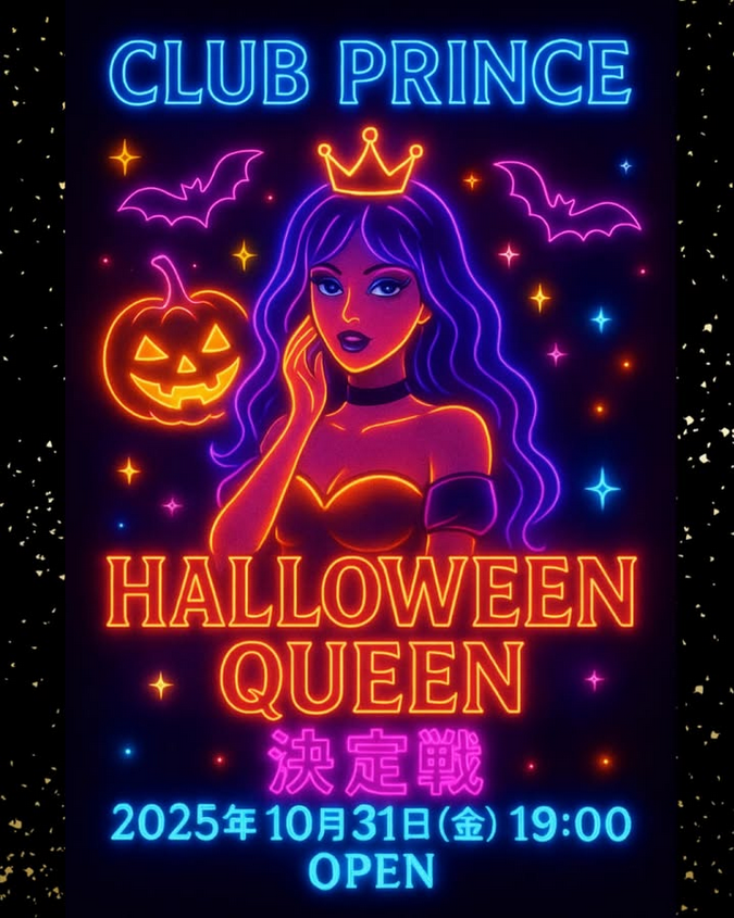 第1回✨Halloween Queen決定戦🧙♀️開催します!! 新着情報 2025.10.23 2025年10月31日(金)19時 OPEN🕖 第1回✨Halloween Queen決定戦🧙♀️開催します!!イベントへご参加いただいたお客様には特典もございます!当日はいつもとは違う雰囲気のプリンスをお楽しみください✨
